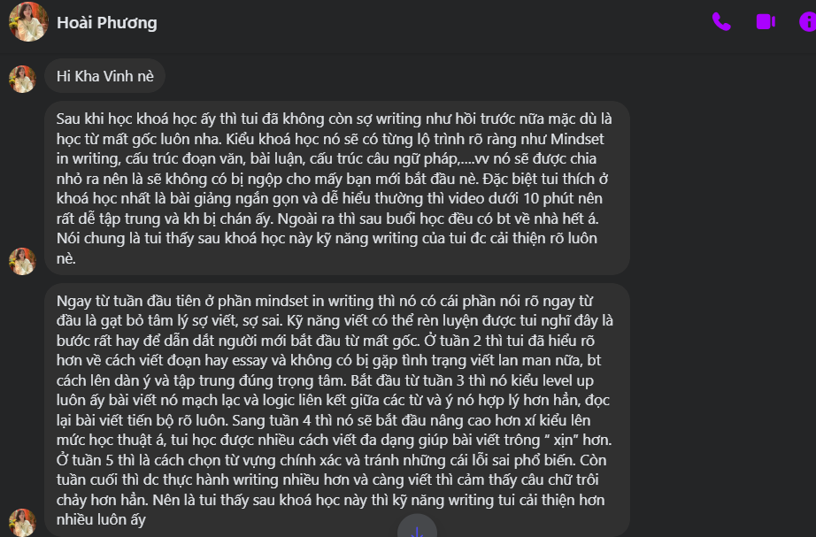 Đây không phải là khóa học “thần kỳ” nếu bạn không chủ động học, nhưng mình tin cách học này giúp bạn đi tới cuối cùng. Vì khi bạn được học theo cách phù hợp với mình, bạn sẽ không thấy áp lực, chỉ thấy mình đang từng chút tiến bộ lên.